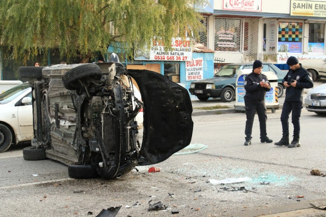 Refüje Çarpan Araç Yan Devrildi: 2 Yaralı